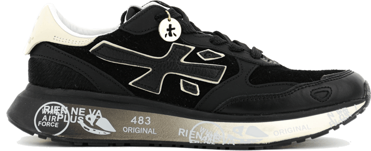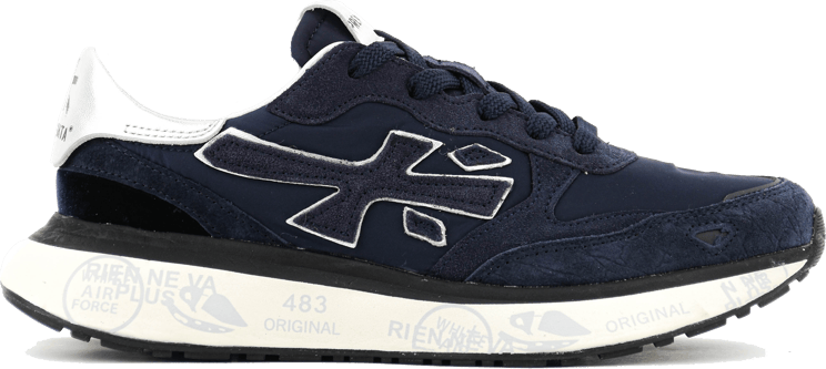 Het logo van Premiata is meer dan alleen een merkteken; het is een symbool van prestige. Subtiel geïntegreerd in het ontwerp van elke schoen, spreekt het tot de kenners van luxe. Het is een discreet detail dat toch duidelijk de drager identificeert als iemand die waarde hecht aan superieure kwaliteit en distinctie.
