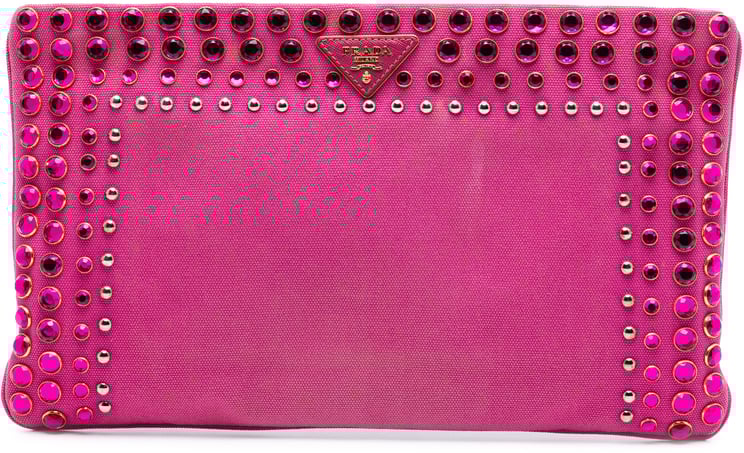 PRE-LOVED FINAL SALE false BEST SELLER Prada Prada Canvas Canapa Studded Vernice Clutch Vanaf Vanaf € 560,-