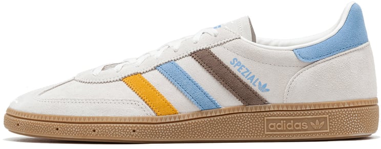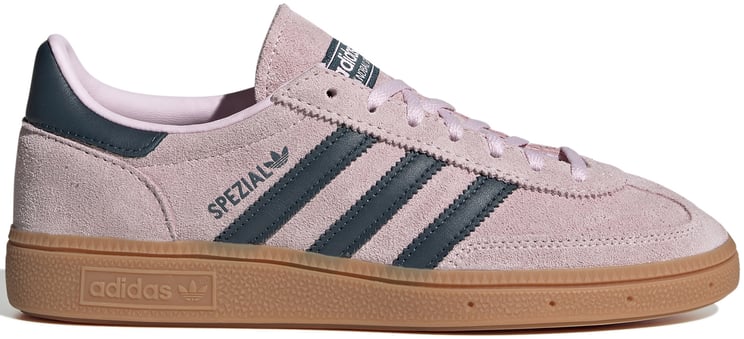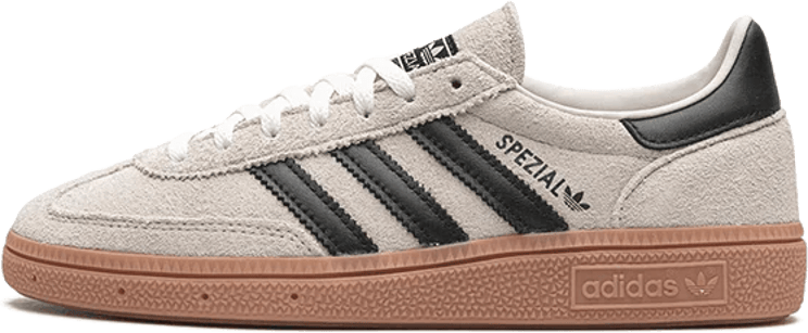 De Adidas Handball Spezial Aluminum Core Black (W) sneakers voor dames combineren een opvallend ontwerp met functionaliteit. De lichte, beige bovenkant biedt een zachte uitstraling, terwijl de drie iconische zwarte strepen aan de zijkanten het sportieve karakter benadrukken. De subtiele branding met het 'Spezial' logo voegt exclusiviteit toe. De rubberen zool in een warme, oranje tint zorgt voor een retro gevoel en een speelse touch. Deze veelzijdige sneakers zijn geschikt voor diverse stijlen, van casual tot gekleed. Verzending binnen één tot vijf werkdagen.