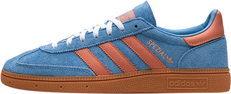 De Adidas Handball Spezial Night Indigo sneakers voor dames combineren navyblauwe en lichtblauwe tinten voor een onderscheidend ontwerp. De drie iconische strepen zijn subtiel in verschillende tinten blauw en crème aangebracht, wat bijdraagt aan de stijlvolle uitstraling. De gumrubberen zool biedt een retro-element, terwijl de contrasterende kleuren zorgen voor een frisse look. Een lichtgroene accentkleur aan de achterkant voegt een unieke flair toe. Het prominente logo van Adidas op de zijkant en tong benadrukt de merkherkenning. Deze sneakers zijn een tijdloze toevoeging aan elke collectie.