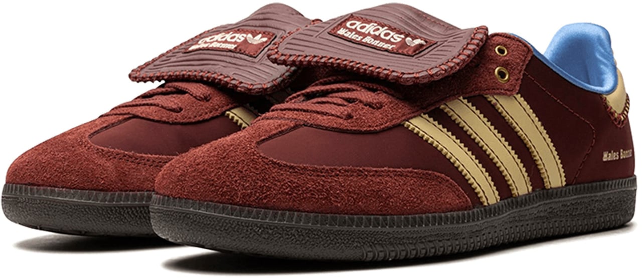 De adidas Samba Nylon Low x Wales Bonner in kastanjebruin biedt een uniek ontwerp met opvallende details. De klassieke sneakers zijn voorzien van drie iconische strepen in een contrasterende tint, wat zorgt voor een dynamisch effect. De tong is uitgerust met een unieke flap, die een moderne twist aan het silhouet toevoegt. Het subtiele logo "Wales Bonner" aan de zijkant en de lichtblauwe accenten op de achterzijde geven de sneakers een exclusieve uitstraling. Deze combinatie van texturen en kleuren maakt ze een opvallende keuze voor elke gelegenheid.