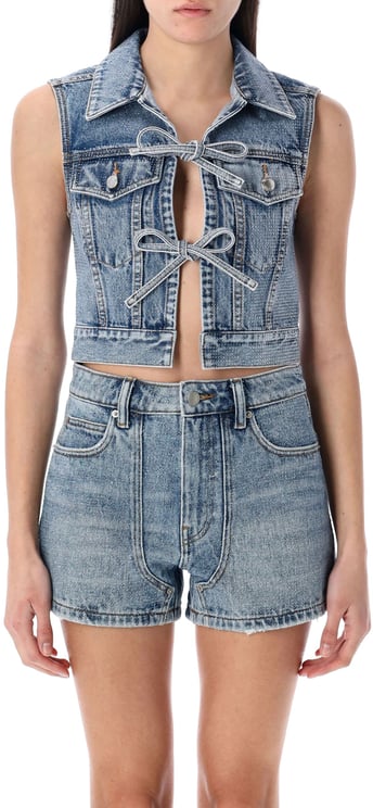 De High Waisted Carpented Short in Crystal Blue van Alexander Wang is vervaardigd uit lichte denim met een vintage uitstraling. Dit ontwerp heeft een hoge taille en opvallende stiksels die de contouren accentueren. De shorts zijn uitgerust met een klassieke ritssluiting en knoopsluiting aan de voorkant, wat zorgt voor een tijdloze uitstraling. De minimalistische zijkanten en subtiele zakken aan de achterzijde combineren functionaliteit met stijl. De onafgewerkte zoom geeft een edgy touch, waardoor deze shorts een moderne twist hebben. Ideaal voor lente en zomer.