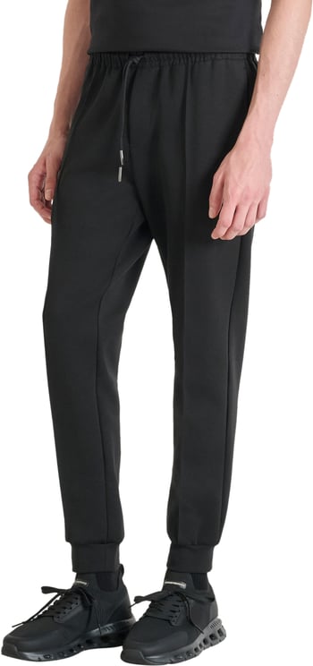 Deze zwarte fleece joggingbroek uit de Antony Morato-collectie heeft een regular fit met iets verlaagde taille en smalle boorden bij de enkels, wat de moderne, gestroomlijnde uitstraling versterkt. Het minimalistische ontwerp krijgt een sportieve touch door subtiele stiksels langs de zijkanten en een tailleband met trekkoord voor verstelbaarheid. Op het bovenbeen prijkt een klein leren logoplaatje met metalen badge op een rubberen patch als luxe detail. De broek combineert comfort van fleece met een verfijnde, tijdloze look.