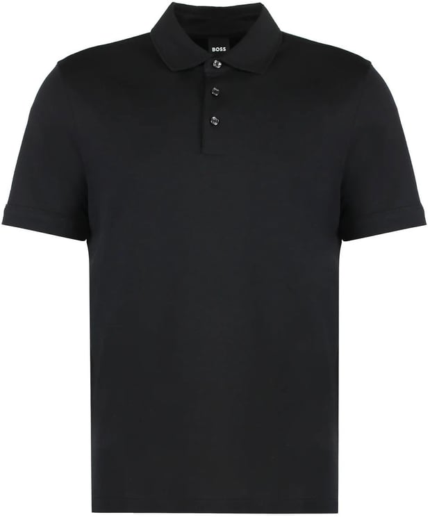De Cotton-piqué polo shirt uit de Boss-collectie combineert tijdloze elegantie met subtiele details: een klassieke kraag met knoopsluiting en ribgebreide boorden voor een verzorgde uitstraling. Het katoen van 100% zorgt voor een comfortabele draagervaring. De zwarte kleur wordt geaccentueerd door een logo-embellishment links en drie kleurrijke stippen daaronder, terwijl de mouwboorden een contrasterende bies tonen voor een sportieve flair. De zoom is voorzien van zijsplitten, wat de pasvorm en bewegingsvrijheid ondersteunt.