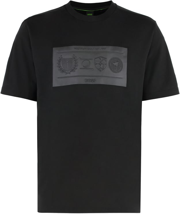 Dit Cotton polo shirt heeft een minimalistisch, zwart ontwerp met een matte borstprint van sportieve emblemen en symbolen die een subtiele uitstraling van prestige geven. De kraag en mouwen zijn geribd en de elegante knoopsluiting is ingetogen geïntegreerd, terwijl de zoom is uitgevoerd met zijnslitjes voor extra bewegingsvrijheid. Het shirt heeft een relaxed fit en is gemaakt van 100% katoen. Het contrast tussen de grafische elementen en de effen achtergrond maakt het geschikt voor een sportieve maar chique look.