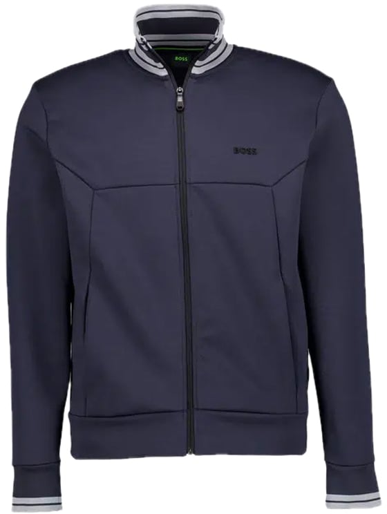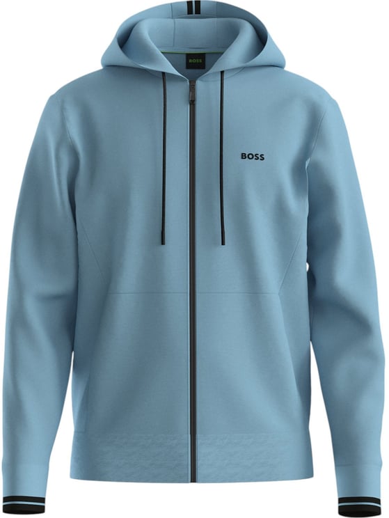 Dit Zestart vest licht blauw heeft een strakke, minimalistische vormgeving met een hoge kraag die een sportieve touch toevoegt. De zachte lichtblauwe tint straalt frisheid en veelzijdigheid uit en wordt subtiel geaccentueerd door het Boss-logo op de voorkant. Een centrale ritssluiting zorgt voor een eigentijdse afwerking, terwijl elastische boorden bij de mouwen zorgen voor een nette pasvorm. Gemaakt van 100% katoen biedt het vest een comfortabele en verzorgde uitstraling, geschikt voor zowel casual als meer formele gelegenheden.