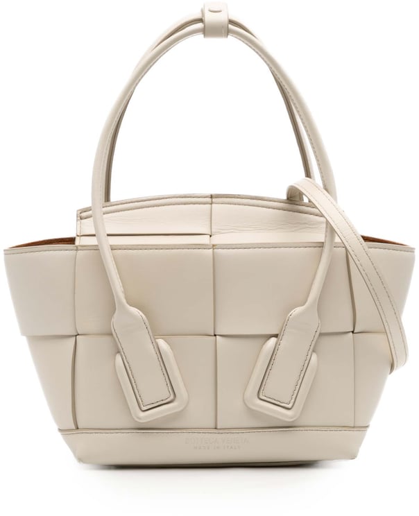 Deze Medium Grained Calfskin Maxi Intrecciato Arco Bag combineert het kenmerkende intrecciato-weefpatroon met een gestructureerde, subtiel gebogen bovenrand en opgerolde handvatten voor een verfijnde uitstraling. De tas is vervaardigd in Italië van calfskin en heeft binnenvakjes met rits en voor-/stekelvakken die praktische organisatie bieden. Afmetingen: 30 x 31 x 12 cm, uitgevoerd in bruin met gedetailleerde stiksels en een luxueuze afwerking die de ambachtelijke kwaliteit van Bottega Veneta onderstreept. Het ontwerp balanceert functionaliteit en elegantie voor dagelijks gebruik.