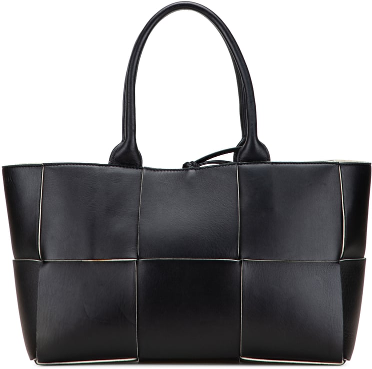 Deze Small Nappa Maxi Intrecciato Arco tote combineert het kenmerkende intrecciato-weefpatroon met zacht nappa leder en opgerolde leren handvatten voor een elegante draagervaring; de tas heeft een open bovenkant met een leren knoopsluiting en bevat een bijbehorende pouch. Het ontwerp is compact en gestructureerd met afmetingen 30 x 20 x 12 cm, uitgevoerd in een diepe groene tint en gemaakt in Italië tussen 2012 en 2025. De levendige groene binnenvoering biedt een subtiel contrast en maakt de indeling praktisch voor dagelijks gebruik. Als high-end accessoire benadrukt deze tote zowel vakmanschap als modern raffinement.