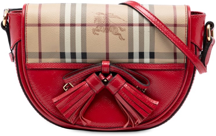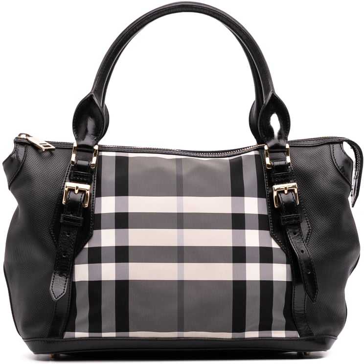 Medium Leather and House Check Banner Satchel