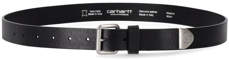 De Script Belt van Carhartt uit de contemporary lijn is een strakke, zwarte leren riem met een minimalistisch ontwerp en een subtiele logo-embossing op de lus. De riem heeft een stevige vierkante metalen gesp die een industriële uitstraling geeft en functioneel blijft voor dagelijks gebruik. De gladde afwerking van het 100% leer accentueert de hoogwaardige look en robuuste constructie. Afmeting: 103 cm, waardoor de riem soepel te dragen is bij verschillende stijlen.