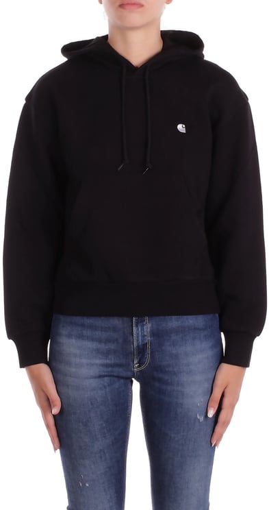Deze Cropped Sweater uit de Black-collectie combineert een tijdloze, diep zwarte kleur met een hedendaagse cropped snit voor een veelzijdige, trendy look. De capuchon en centrale ritssluiting geven praktische functionaliteit terwijl twee ruime opbergzakken aan de voorkant ruimte bieden voor kleine spullen of het warm houden van handen. Subtiel borduursel van het merklogo op de borst zorgt voor een herkenbaar maar ingetogen detail. Licht gebolde mouwen geven het klassieke ontwerp een moderne twist en benadrukken de contemporary signatuur van het model.