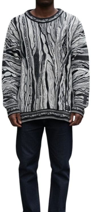 Deze Trui C12509 201 combineert een opvallend abstract patroon in zwart, wit en grijs met golvende lijnen en geometrische vormen voor een dynamische, artistieke uitstraling. De mix van verschillende texturen en schaduwen creëert visuele diepte, terwijl de brede ronde halslijn en ribgebreide boorden aan mouwen en onderkant voor een nette afwerking zorgen. Gemaakt van 50% katoen en 50% polyacryl, biedt het model een modieuze look die de creatieve signatuur van Carlo Colucci onderstreept.