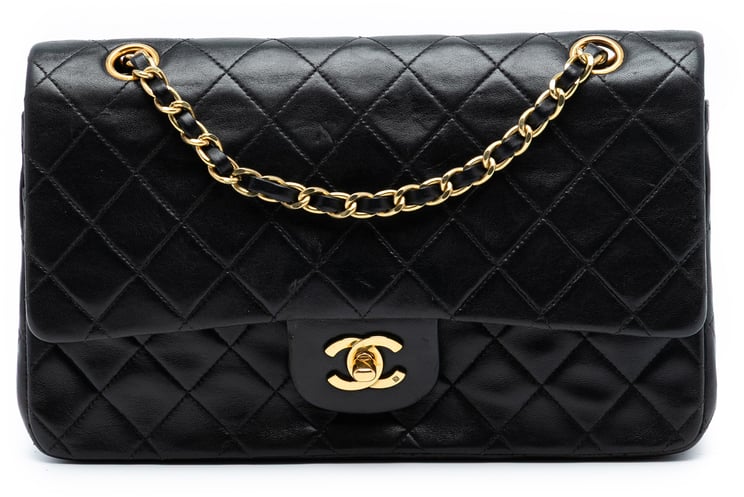 De Reissue 2.55 Aged Calfskin Double Flap 227 presenteert het iconische 2.55‑ontwerp in zwart geaderd kalfsleer met dubbele flap en de kenmerkende draaisluiting, afgewerkt met zilverkleurige ketting‑schouderbanden. Het quilted patroon en de gestructureerde vorm geven een klassieke, elegante uitstraling, met een externe achterzak en interne rits- en steekvakken voor dagelijkse organisatie. Afmetingen: 31 x 21 x 9,5 cm; vervaardigd in Frankrijk rond 2008–2009. Het verfijnde materiaal en de zichtbare metalen sluiting benadrukken de authentieke Reissue‑signatuur.