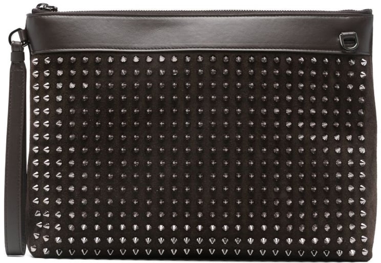 De Wallets Black uit de collectie presenteert een rechthoekige herenclutch met ritssluiting en een polsband met studs voor eenvoudig draaggemak. Het diepe zwart vormt de luxe basis waarop een rijke versiering van gouden spikes in verschillende groottes diepte en textuur creëert, waardoor een edgy, punkachtige uitstraling ontstaat. De bovenrand is strak en minimalistisch en vormt een bewust contrast met de gedurfde, rijkelijk bestickerde onderzijde. Afwerking en sluiting benadrukken functionaliteit en statement-design in één.