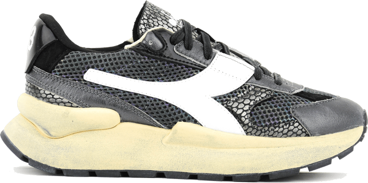De Mercury Elite combineert een modern-retro ontwerp met opvallende materiaalcontrasten voor dames, waardoor de sneaker zowel opvallend als veelzijdig is. Mesh-panelen geven textuur, terwijl witte leren accenten en het witte Diadora-symbool de zijkant benadrukken en voor herkenbaarheid zorgen. De metallic grijze kleur zorgt voor een subtiele glans en een futuristische uitstraling. De chunky, lichtgekleurde zool geeft een sportieve, trendy look en voegt visuele hoogte toe aan het silhouet. Unieke lijnen en details maken deze sneaker tot een opvallend statement.