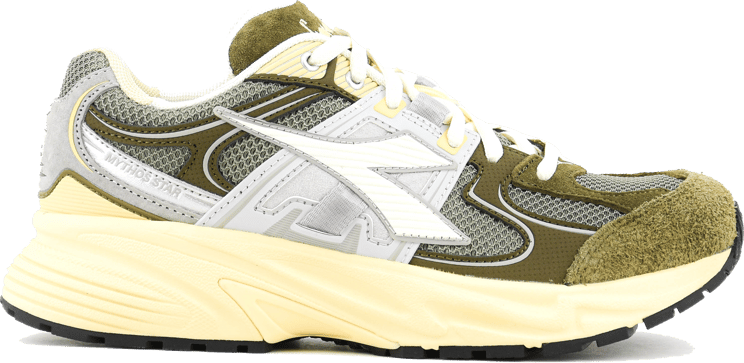 Een eigentijdse sneaker waarin retro en moderne elementen samenkomen: de Mythos Star M2 Stone heeft een dynamische vorm met opvallende lijnen en een groot Diadora-logo op de zijkant. De kleurenmix van olijfgroen, lichtgrijs en crème geeft een frisse, veelzijdige look, terwijl mesh-panelen zorgen voor ademend vermogen en de neus is afgewerkt met subtiel suède. De lichtgewicht, gedempte zool in zachte crème versterkt het hedendaagse karakter en complementeert de verschillende materialen en kleuren. Deze uitvoering van de Mythos Star M2 Stone is ontworpen voor dames die zoeken naar stijl met comfort.