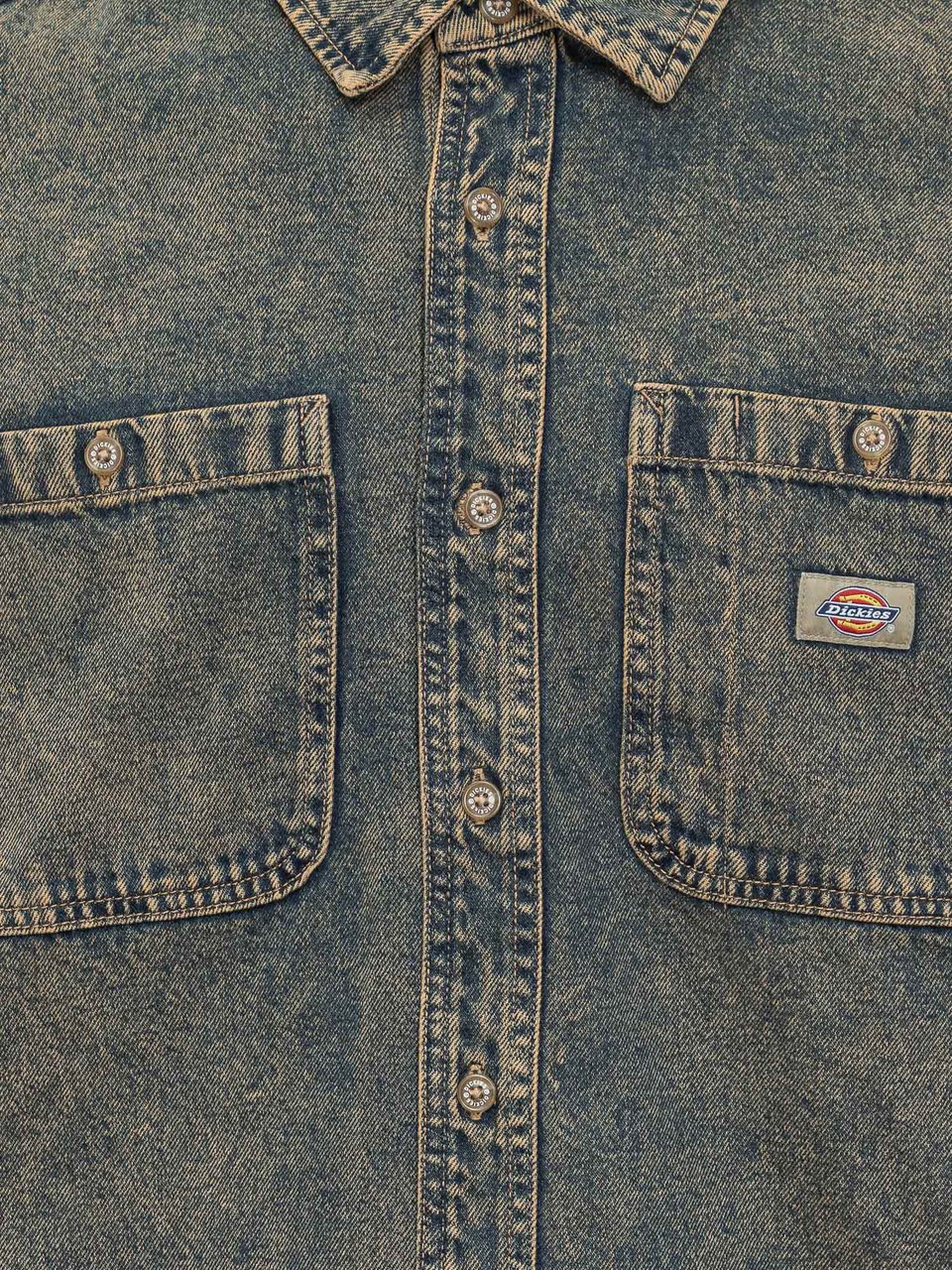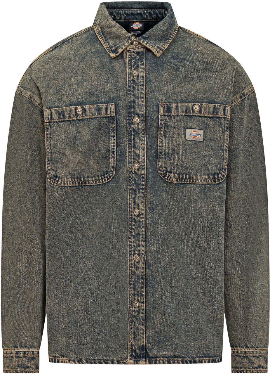 Het Dickies Camicia Houston overhemd voor heren heeft een gedempte blauwton met een denimlook en een vintage uitstraling. Het shirt is voorzien van een klassieke knoopsluiting aan de voorkant en een traditionele puntkraag. De lange mouwen zijn afgewerkt met polsbandjes met knopen. Twee grote borstzakken met knoopsluiting bieden extra functionaliteit. De subtiele doorgestikte schoudernaad voegt een interessante detail toe aan het ontwerp. Dit casual overhemd is geschikt voor de lente en zomer en biedt een tijdloze charme.