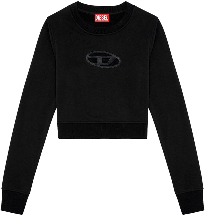 Deze Diesel sweater voor dames heeft een cropped snit en is uitgevoerd in een diep zwarte kleur, wat bijdraagt aan een tijdloze uitstraling. Het ontwerp bevat een subtiel, geborduurd logo-embleem op de borst voor een luxe touch. De lange mouwen zijn voorzien van ribgebreide boorden, wat een sportieve uitstraling geeft. De ronde halslijn is eenvoudig en elegant, waardoor de nadruk op het logo ligt. Deze sweater combineert minimalistische stijl met opvallende branding en is veelzijdig te combineren voor verschillende gelegenheden.