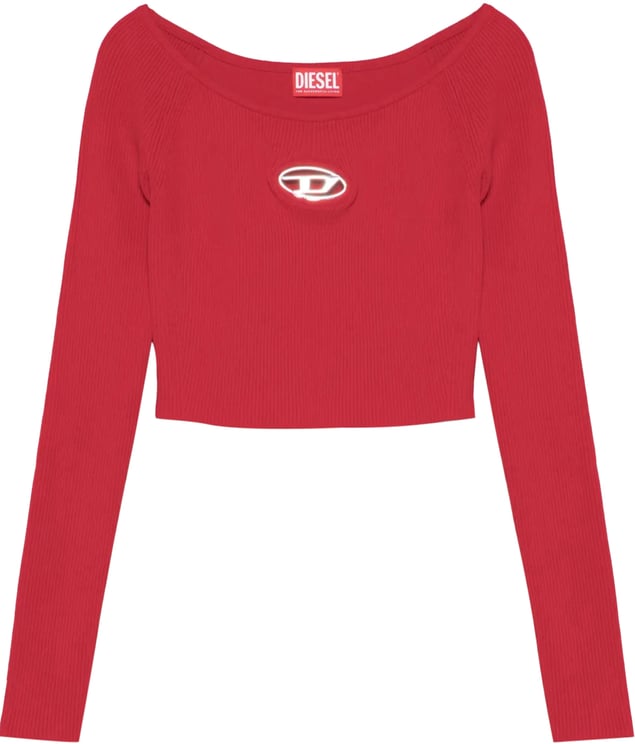 De Diesel sweater voor dames in een opvallende, heldere rode kleur trekt direct de aandacht. Het strakke en moderne ontwerp heeft een ronde halslijn en lange, elegant aansluitende mouwen, wat bijdraagt aan de gestroomlijnde look. Een subtiel logo op de borst voegt een uniek detail toe. De ribstructuur van de stof zorgt voor extra textuur en benadrukt de eigentijdse stijl. Geschikt voor de herfst en winter, is deze sweater een uitstekende keuze voor een trendy en zelfverzekerde uitstraling.