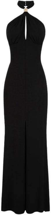 De Dress Black van Elisabetta Franchi is een elegant zwart jurkje, ontworpen voor dames. Het beschikt over een verfijnde halternek met een opvallende sluiting, die de aandacht trekt. De diepe uitsnijding aan de voorkant voegt een sensuele touch toe, terwijl de lange, vloeiende rok een dramatisch silhouet creëert. Een subtiele split aan de onderzijde biedt een chique uitstraling. Dit minimalistische ontwerp met strakke lijnen accentueert de vrouwelijke vormen, waardoor het een ideale keuze is voor een avondje uit of speciale gelegenheden.