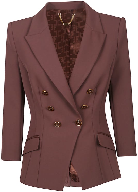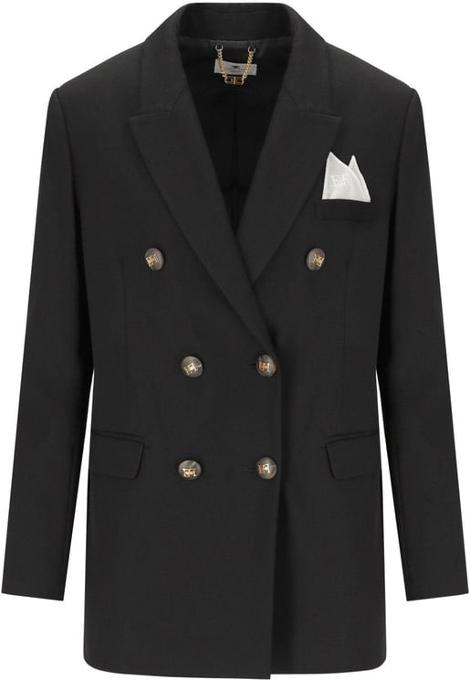 Deze blazer van Elisabetta Franchi in diep marineblauw belichaamt elegantie en verfijning. Het ontwerp heeft een dubbele rij knopen aan de voorkant voor een klassieke uitstraling. Licht gepadde schouders zorgen voor een gestructureerde look, terwijl subtiele stiksels de taille accentueren en een slanker silhouet creëren. De brede revers voegen een chique touch toe, en de functionele zakken aan de voorkant versterken de stijl. De binnenkant is afgewerkt met een glanzende voering, wat bijdraagt aan de luxe uitstraling van deze blazer. Geschikt voor de lente en zomer.