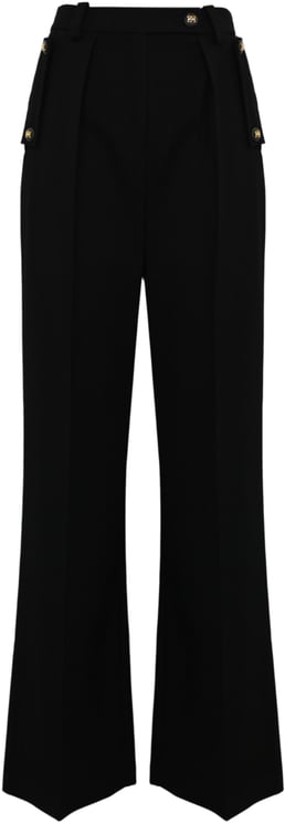 Deze Trousers Merlot uit de Essential-collectie is een palazzo broek uitgevoerd in double-layer crêpe stof met een hoge taille en strakke, rechte pijpen voor een tijdloze uitstraling. Het ontwerp heeft subtiele plooien en flapapplicaties met geïntegreerde zakken aan de voorkant, afgewerkt met geëmailleerde logoknopen die luxe details toevoegen. De broek sluit met een zijrits met pull-tab en heeft een nette zoom die het vakmanschap benadrukt. Een veelzijdig, elegant stuk dat de basis vormt voor een verfijnde garderobe.