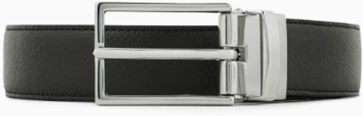 Een zwarte Belts Black riem van Emporio Armani met een strak, modern ontwerp en subtiele textuur die diepte toevoegt aan het geheel. De glanzend zilverkleurige gesp met discreet gegraveerd Emporio Armani-logo geeft een luxe, verfijnde uitstraling. De combinatie van de gestructureerde riem en de glanzende gesp creëert een aansprekend contrast zodat het accessoire zowel casual als formele outfits elegant aanvult. Dit tijdloze ontwerp heeft een moderne twist en is veelzijdig te combineren.
