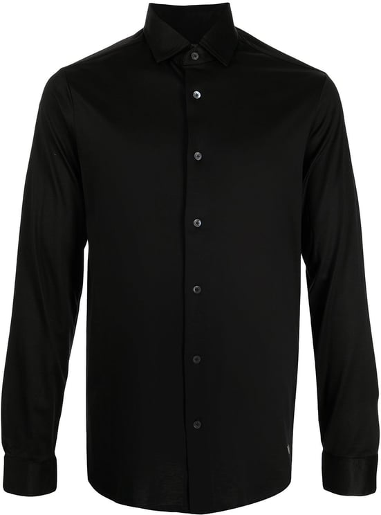 Dit casual overhemd van Emporio Armani heeft een moderne uitstraling in een diepzwarte kleur die elegantie uitstraalt. De klassieke kraag en de knoopsluiting met glanzende knopen voegen verfijning toe. De lange mouwen zijn strak en eenvoudig, wat bijdraagt aan de minimalistische esthetiek. Het ontwerp heeft een schone, rechte lijn zonder overbodige versieringen, waardoor het veelzijdig is voor diverse gelegenheden. Zorgvuldig afgewerkt met nette stiksels, benadrukt dit overhemd de kwaliteit en stijl voor de moderne man die een chique, casual look waardeert.