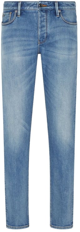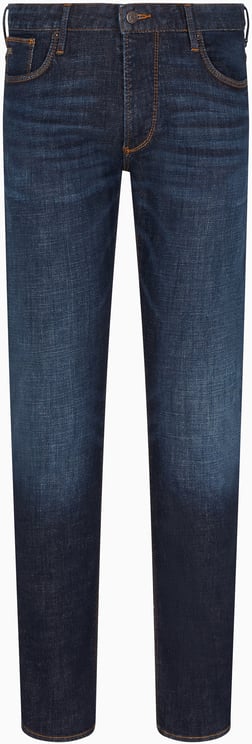 Een slim-fit Heren 5 Pockets Jeans van Emporio Armani met een diepblauwe kleur en subtiele vervaging die een moderne uitstraling geeft. De klassieke vijf-pocketconstructie heeft strategisch geplaatste zakken en nette randafwerking voor optimale functionaliteit en esthetiek. Contrasterende stiksels zorgen voor een dynamisch accent, terwijl een discrete merklabel op de achterzak een luxe touch toevoegt. De tijdloze uitstraling en verzorgde details benadrukken vakmanschap en maken dit model geschikt voor zowel casual als meer formele gelegenheden.