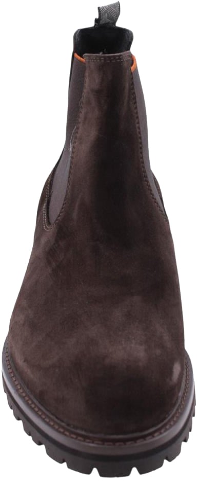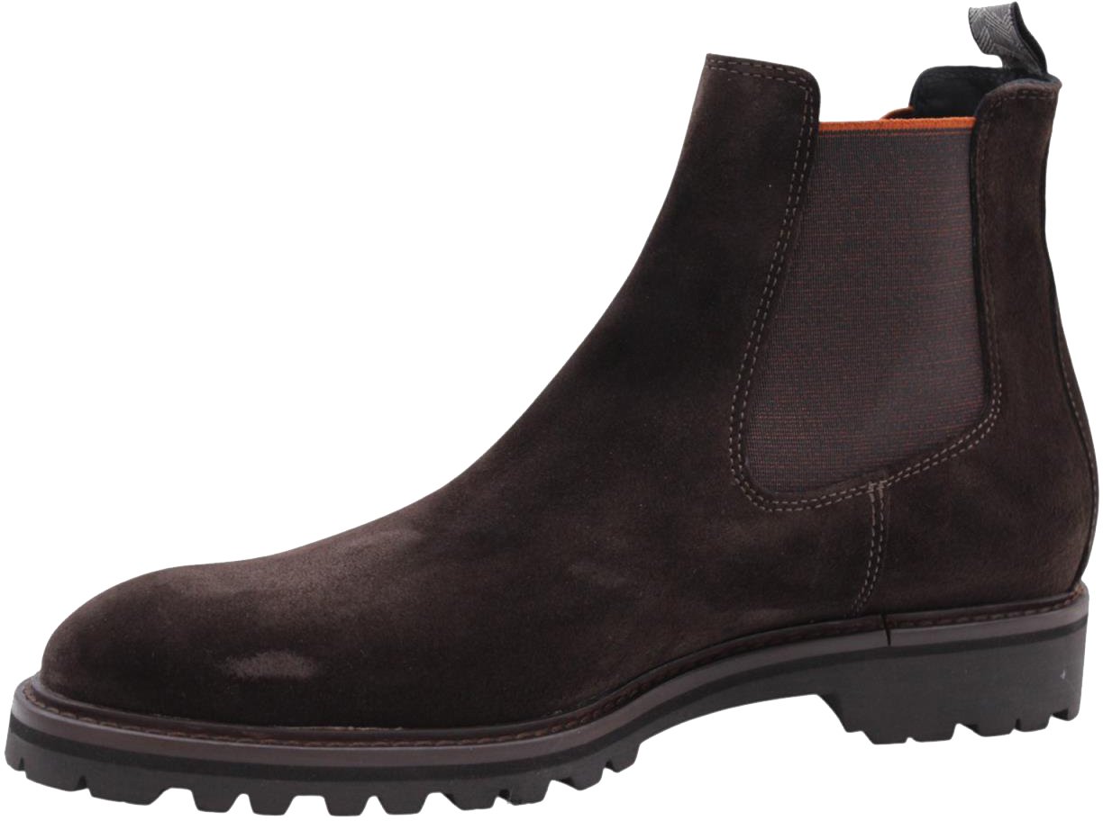 De Floris van Bommel Boot Brown is een elegante boot voor heren, uitgevoerd in een rijke, donkere bruine kleur. Het ontwerp is geïnspireerd op de klassieke Chelsea-bootstijl, met een elastische inzet aan de zijkanten voor een moderne uitstraling. De stevige, grof profielzool biedt uitstekende grip en een robuuste uitstraling. Subtiele stiksels accentueren de vorm van de boot, terwijl de contrasterende binnenvoering in een levendige kleur een verrassend detail toevoegt. Deze boots zijn een veelzijdige keuze voor zowel casual als formele gelegenheden.