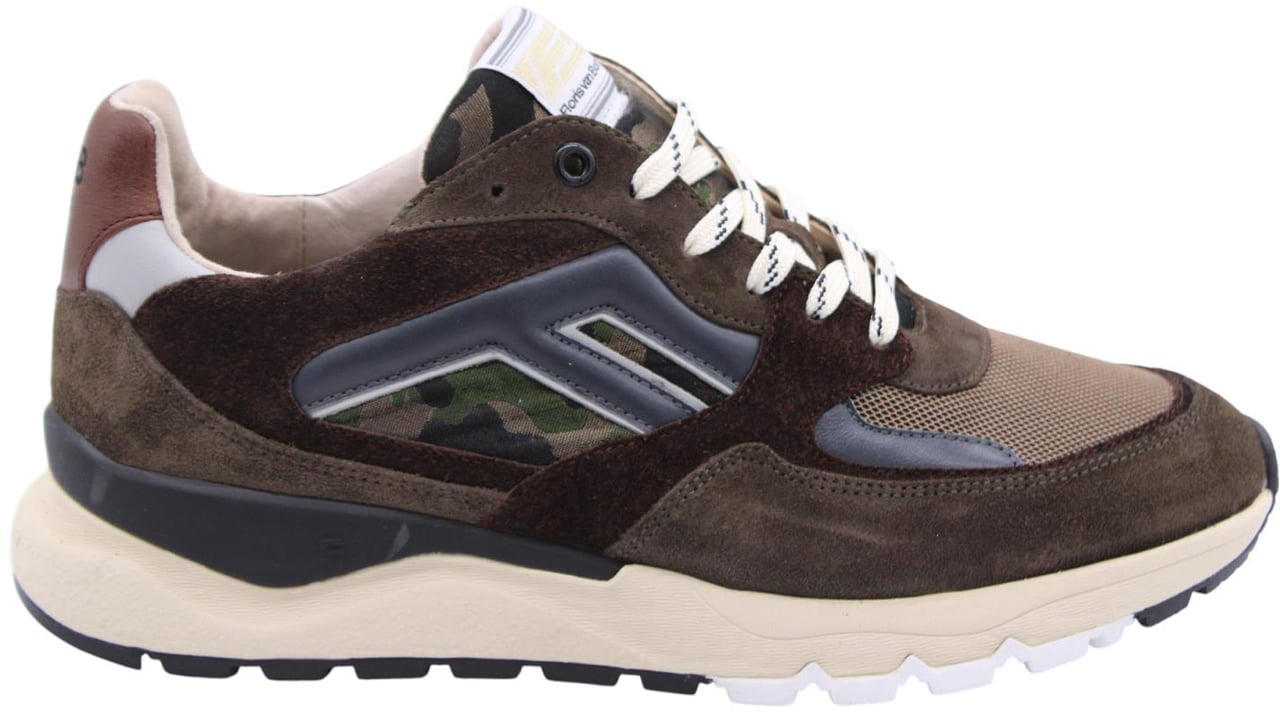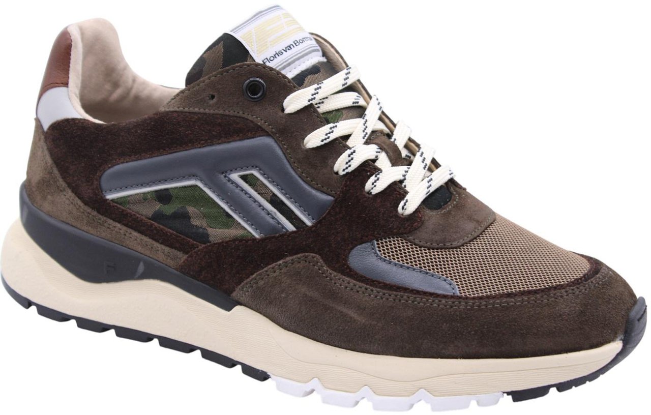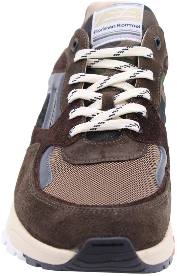 De Sneaker Brown van Floris van Bommel voor heren combineert bruin en groen in een opvallende mix van kleuren en stijlen. De bovenkant heeft een trendy camouflagedetail, verrijkt met luxe suède en leren accenten. De contrasterende witte en zwarte zool biedt een sportieve uitstraling, terwijl de lichte veters het ontwerp accentueren. Subtiele branding op de tong voegt een uniek element toe. Deze sneakers stralen een moderne, tijdloze esthetiek uit, ideaal voor de modebewuste man die zijn look wil versterken.