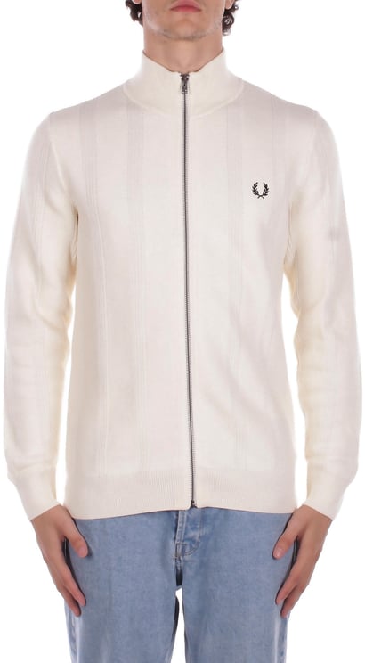 Een beige Fred Perry Sweater met subtiele ritssluiting voorop en twee zijzakken, uitgevoerd in 72% katoen en 28% gerecycled polyester met een voering van 97% katoen en 3% elastaan. Het iconische laurel-wreath logo is geborduurd op de borst en de geribde mouwen geven de trui een nette, afgewerkte uitstraling. De kraag heeft een sportieve, stijlvolle snit die de minimalistische look een moderne touch geeft. Regular pasvorm; leveranciercode J1328560.