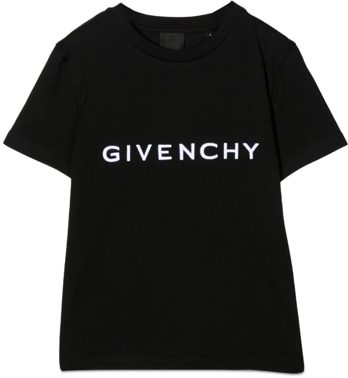 Dit Givenchy T-shirt Logo voor jongens combineert een strakke zwarte achtergrond met de merknaam Givenchy in een grafische, abstract gedecoreerde letterprint die een dynamisch visueel accent geeft. De eenvoudige, stijlvolle snit zorgt voor een veelzijdig draagbaar item dat gemakkelijk te combineren is met andere kledingstukken voor verschillende gelegenheden. Gemaakt van 100% katoen en vervaardigd in Tunesië, biedt het shirt een moderne uitstraling met hoogwaardige afwerking en comfortabel draagcomfort voor dagelijks gebruik.