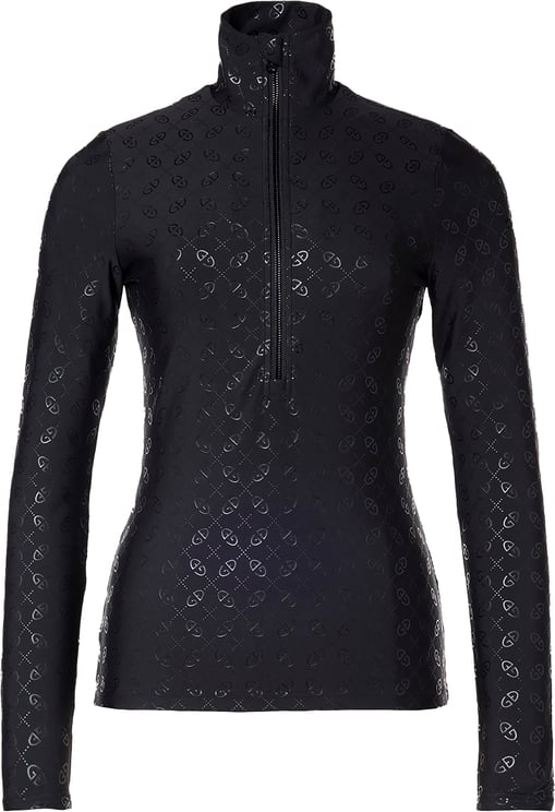 De Icon Ski Pully van Goldbergh is een premium damespullover, ontworpen voor de herfst- en winterseizoenen. De elegante, zwarte kleur met subtiele glans en het all-over logo patroon geven het een luxe uitstraling. De hoge kraag biedt een moderne touch, terwijl de ritssluiting aan de voorkant zowel functionaliteit als stijl toevoegt. De lange, strakke mouwen zorgen voor een gestroomlijnde look. Dit kledingstuk benadrukt de hoogwaardige afwerking en eigentijdse esthetiek van het merk, geschikt voor sportieve en casual gelegenheden.