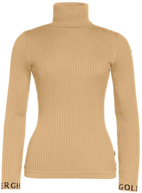 De Mira Long Sleeve Knit Marmottes van Goldbergh is een damestrui met een elegante, ribgebreide structuur die luxe uitstraalt. De warme, zandachtige tint maakt het een veelzijdig kledingstuk. De hoge kraag biedt extra warmte en voegt een chique element toe aan het ontwerp. Langs de mouwen zijn subtiele logo-details in een contrasterende kleur aangebracht, wat zorgt voor een sportieve flair. De lange, strakke mouwen accentueren de slanke lijnen van de trui, waardoor het een moderne en verfijnde stijl heeft, geschikt voor verschillende gelegenheden.