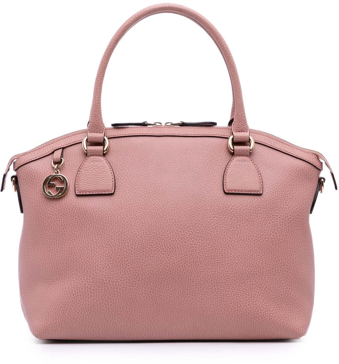 Een elegante satchel uit de Dollar Calfskin GG Charm-lijn met een gestructureerd rood leren lichaam, opgerolde leren handvatten en een afneembare, platte leren schouderriem. De tas sluit met een ritssluiting en beschikt binnenin over een ritsvak en steekvakken voor georganiseerde opbergruimte; afmetingen: 29,00 x 23,50 x 12,50 cm. Subtiele metalen accenten en een herkenbare Gucci-logo hanger geven extra allure, terwijl de Italiaanse makelij en het luxe kalfsleer de verfijnde uitstraling onderstrepen. De combinatie van draagopties en afgewerkte details maakt dit model geschikt voor uiteenlopende gelegenheden.