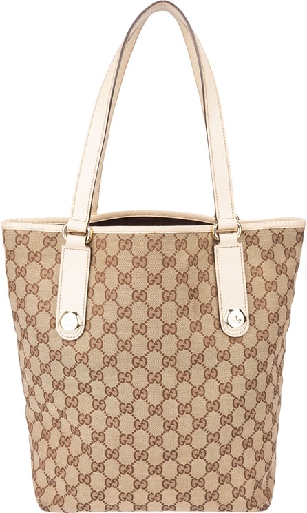 Deze GG Canvas Britt tote combineert herkenbaar monogramcanvas met lederen afwerking en platte leren handvatten voor een klassieke, toch moderne shopper. De tas sluit met een ritssluiting en heeft binnen zowel een ritstasje als een steekvak voor overzichtelijke organisatie; afmetingen 31 x 27 x 11 cm. Gemaakt in Italië en vervaardigd tussen 2000 en 2015, met een bruin kleurpalet en het opvallende glanzende GG-logo als stijlaccent. Constructie en details zoals lederen trim en metalen rits benadrukken de hoogwaardige uitvoering.