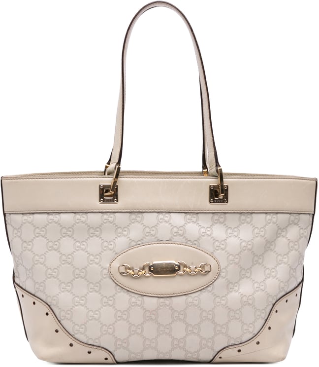 Een elegante GG Monogram Horsebit Handbag met beige canvas en crèmekleurige leren accenten, uitgevoerd in een gestructureerde, afgeronde vorm die tijdloze, chique uitstraling combineert met luxe details. De tas meet 40 x 22 x 14 cm en heeft een brede opening, stevige handvatten met subtiele contrastkleur en een opvallende metalen sluiting die de look verfijnt. De tas is vervaardigd van katoen en leer, wordt geleverd met stofzak en toont het iconische GG-patroon in een verfijnde bruine tint.