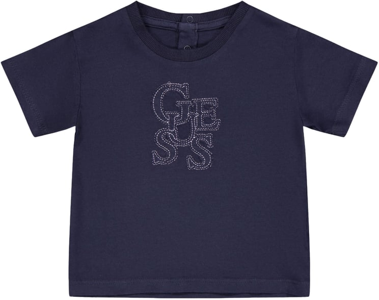 Dit Guess Baby Meisjes T‑Shirt in navy heeft een diepe marineblauwe kleur en een levendig, modern dessin met een teddybeer in rok en strik, omgeven door kleurrijke hartjes en de tekst "Guess Girl" in handgeschreven stijl. De speelse illustratie geeft het shirt een vrolijke uitstraling die uitstekend past bij jonge kinderen. Praktische drukknopen aan de schouder maken het aandoen eenvoudig en comfortabel.