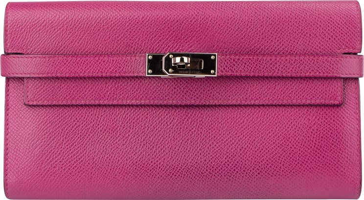 Deze Kelly Wallet uit de Hermès-collectie combineert een strak, minimaal ontwerp met een levendige oranje Epsom kalfslederen afwerking en palladium hardware, waardoor het een moderne en luxe uitstraling heeft. De portemonnee heeft een verfijnde, rechte vorm (20 x 11 x 2 cm) met een gladde voorkant en een opvallende metalen clip als sluiting die zowel functioneel als stijlvol is. Het gestructureerde Epsom-leer accentueert de kleur en zorgt voor een subtiele textuur die de elegante lijnen versterkt. Wordt geleverd met stofzak en draagt de datacode X (2016).