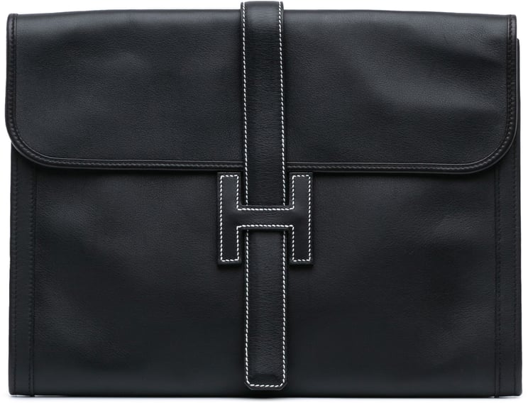 Een verfijnde Swift Jige Elan 29 clutch in Blue Zanzibar met een slanke, minimalistische vormgeving en een frontflap met pull-through sluiting die zorgt voor een strakke, tijdloze uitstraling. Het ontwerp benadrukt het gestileerde H-detail in de sluiting en fijne contrasterende stikselaccenten, uitgevoerd in Swift leer en vervaardigd in Frankrijk tussen 2000 en 2014. De afmetingen zijn 28,50 x 19,00 x 2,00 cm, waardoor de tas compact blijft maar karakter behoudt. Dit high-end damesaccessoire combineert luxe materiaal en een elegante silhouette.