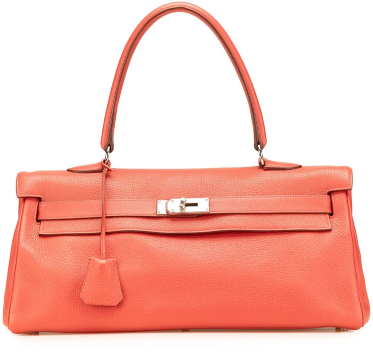 Een elegante Hermès Togo Kelly 35 uit 2004, uitgevoerd in rood en vervaardigd in Frankrijk, met een gestructureerde flap en een pull-through met draaisluiting die het iconische silhouet definieert. De tas heeft een afgerold leren handvat en een afneembare, platte leren schouderriem voor twee draagopties, en binnenin rits- en steekvakjes voor organisatie. Uitgevoerd in togo leer en met afmetingen 35 x 24 x 12 cm, toont het ontwerp verfijnde metalen details en een klassieke, tijdloze uitstraling die een opvallende kleurcombineert met strakke lijnen. De constructie benadrukt functionaliteit en luxe afwerking, geschikt voor wie een statement zoekt met vakmanschap van Hermès.