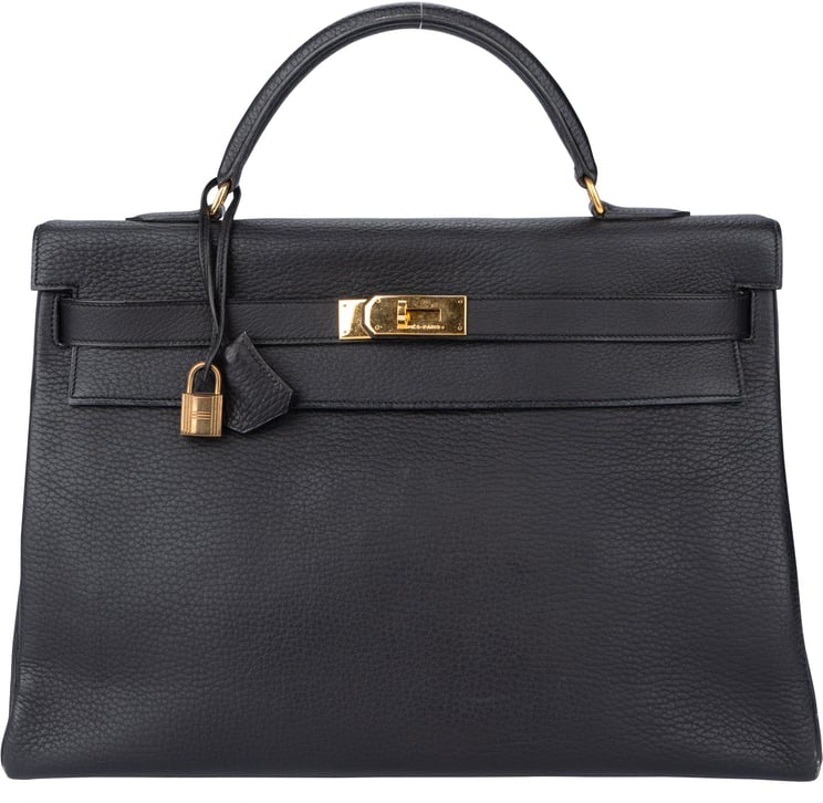 Deze Togo Kelly II Retourne 28 combineert een gestructureerde, klassieke vorm met een zijdezachte Togo lederen uitvoering in zwart en een vlak leren handvat plus afneembare schouderriem voor veelzijdig draaggebruik. Het omslag met draaiversluiting en de opvallende gouden afsluiting vormt het stijlvolle focal point, terwijl binnenin rits- en steekvakken voor organisatie zorgen; afmetingen 28 x 21 x 11 cm. Het totaalbeeld wordt versterkt door gestikte naden en subtiele logodetails, vervaardigd in Frankrijk in 1998 en gewaardeerd als high-end artisanale handbagagemaker.