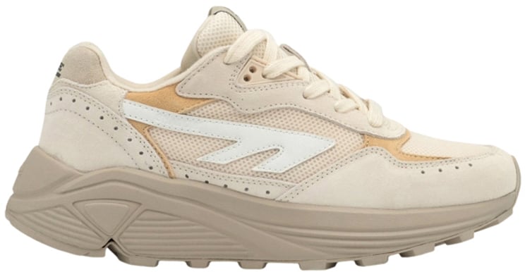 De Hi-Tec sneakers voor heren combineren een eigentijds ontwerp met een retro-inspiratie. De basis is lichtbeige, aangevuld met frisse witte mesh en subtiele groene accenten op de zijkanten. De sneakers zijn vervaardigd uit een mix van suède en mesh, wat zorgt voor een aantrekkelijke textuur. De opvallende logo's zijn strategisch geplaatst voor een sportieve uitstraling, terwijl de gedurfde, afgeronde zool een dynamisch profiel biedt. Deze veelzijdige sneakers zijn geschikt voor zowel casual als sportieve outfits in de lente en zomer.
