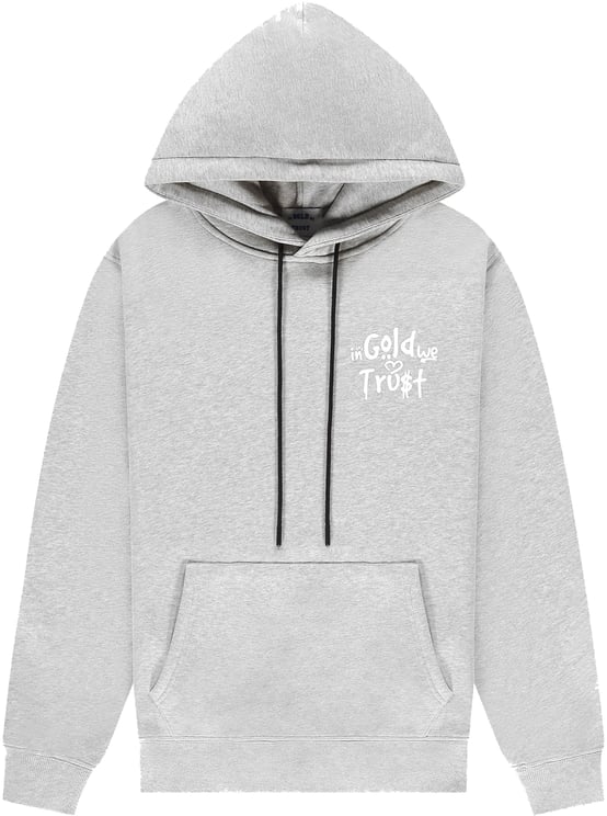 De Notorious Grey hoodie van In Gold We Trust is vervaardigd uit 340gsm jersey-stof en biedt een comfortabele pasvorm. De hoodie is uitgevoerd in een stijlvolle grijs melange kleur en is voorzien van een geborduurd logo op de borst en de mouw, evenals een geprint logo op de achterkant. De ribgebreide mouwboorden en taille zorgen voor een goede afwerking. De capuchon heeft een trekkoord voor aanpassing en een unieke afwerking aan de binnenzijde, terwijl de kangoeroezak functionaliteit en extra stijl toevoegt.