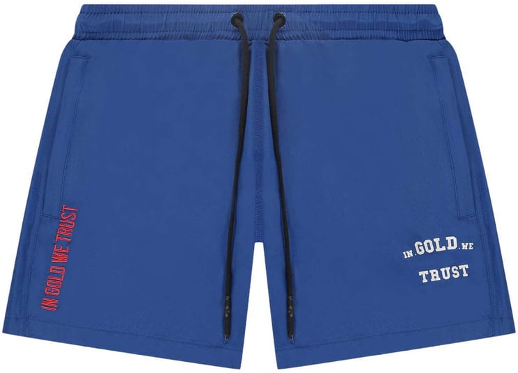 De Shorter Blue van In Gold We Trust is een marineblauwe short met een tijdloze uitstraling. Deze shorts zijn voorzien van ruime zijzakken voor praktische opbergruimte. Opvallend is de grote, witte opdruk aan de rechterzijde met de merknaam "IN. GOLD" en "TRUST", wat zorgt voor een moderne en sportieve look. De shorts zijn afgewerkt met subtiele contrastdetails, die bijdragen aan de eigentijdse stijl. Geschikt voor het herfst- en winterseizoen.