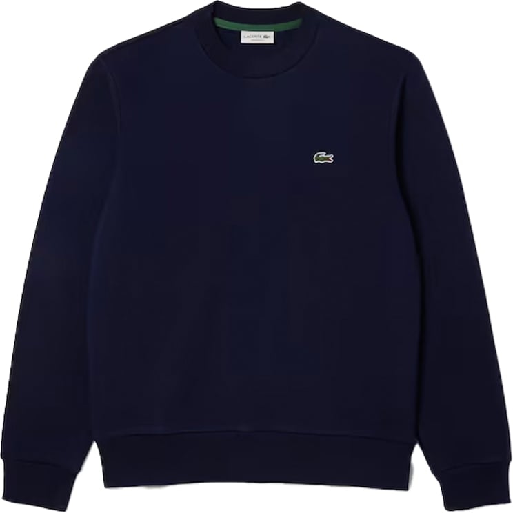 Een diep groene sweater uit de Verde Scuro-lijn met tijdloze ronde hals en lange mouwen, uitgevoerd in een premium mix van 58% polyester, 38% katoen en 4% polyamide. Het minimalistische ontwerp krijgt karakter door het subtiel geborduurde Lacoste-krokodillogo op de borst en de ribgebreide afwerking aan mouwen en onderkant. De schone lijnen maken deze milieuvriendelijk geproduceerde trui veelzijdig genoeg voor zowel casual looks met donkere jeans en witte sneakers als een nettere combinatie onder een blazer.