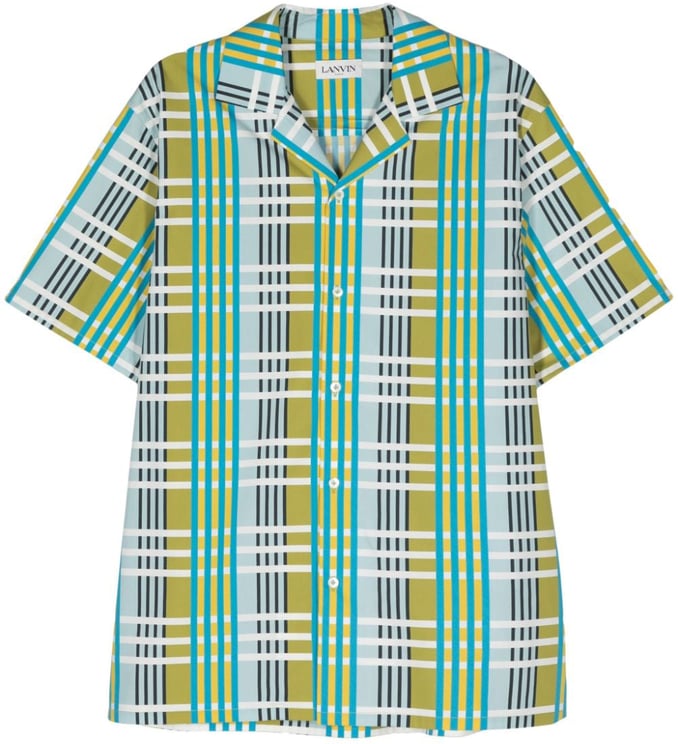 Dit LANVIN overhemd voor heren is vervaardigd uit 100% katoen en is ontworpen met een opvallende, multicolour grafische print. De combinatie van zacht geel, helder blauw, zwart en wit creëert een levendig contrast, terwijl de speelse ruitstructuur een retro uitstraling biedt. De brede kraag en knoopsluiting aan de voorkant zorgen voor een nette afwerking. Het dynamische ontwerp, met zowel horizontale als verticale lijnen, maakt dit shirt een unieke aanvulling voor de garderobe van een modebewuste man. Geschikt voor zowel casual als meer formele gelegenheden.