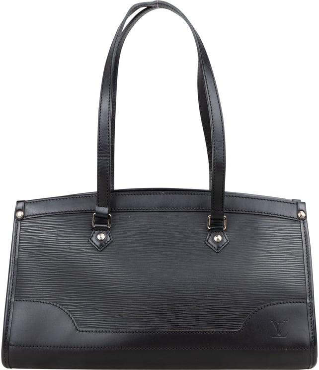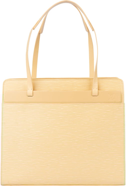 De Croisette PM presenteert zich in lichtgrijs epi-leer met kenmerkende verticale lijnen en een minimalistisch, tijdloos silhouet dat elegantie en functionaliteit verenigt. Het model heeft platte leren handvatten, een ritssluiting aan de bovenzijde en binnenin meerdere steekvakken voor ordelijke indeling; de tas meet 31,50 x 27,00 x 10,50 cm en is vervaardigd in 2001 in Spanje. Subtiele branding op de voorkant onderstreept de luxe uitstraling, terwijl het stevige ontwerp met volle basis zorgt voor een moderne, verfijnde look geschikt voor dagelijks gebruik.