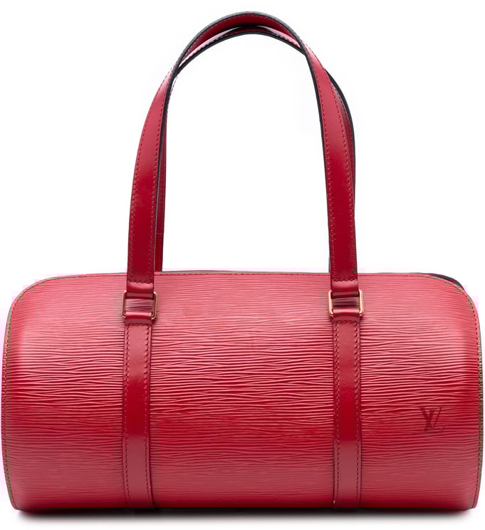 De Epi Soufflot combineert het kenmerkende Epi-leer met platte leren handvatten en een ritssluiting bovenaan, uitgevoerd in een warme bruine tint die elegantie uitstraalt. Het golvende, gestructureerde oppervlak en fijne stikseldetails accentueren het vakmanschap, terwijl een binnenvak als steekvak voor overzicht zorgt; afmetingen: 30,5 x 15 x 14 cm. Dit model is vervaardigd in Frankrijk en dateert uit 1996, waardoor het een herkenbaar jaargetijde en herkomst heeft. Het ontwerp wordt afgerond met een discreet Louis Vuitton-logo en een ronde, verfijnde vorm.
